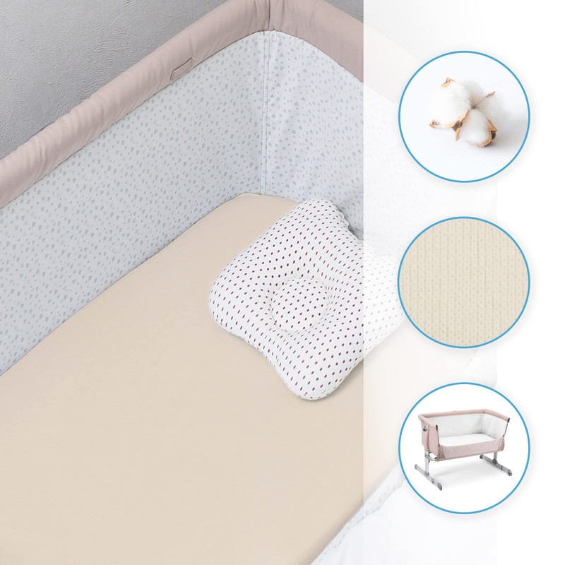 • đź’™ Our baby jersey fitted sheet is suitable for the Next2me extra bed (83 x 50 cm). Cotton jersey sheets are very easy to use. They have a fully elastic band for easy installation to the mattress of your cot with a depth of up to 8 cm