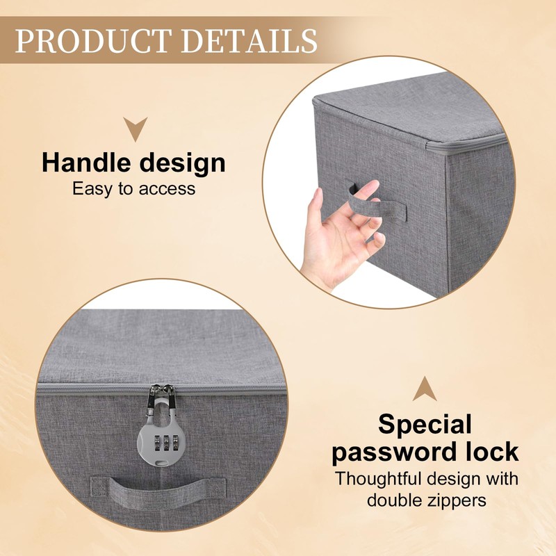 - Oxford lining provides excellent load capacity, dimensional stability as well as protection against water and dust. Foldable design - When unfolded, the box measures 30 x 24 x 18 cm and offers generous storage space for everyday use. When not in use, it can be folded to save space. The integrated lid reliably protects the contents from dust and moisture. Portable and practical - Thanks to its light weight and practical handle, the box is easy to carry. The combination lock can be individually adjusted - no key required. Double zips allow for convenient opening and closing with optimal protection.