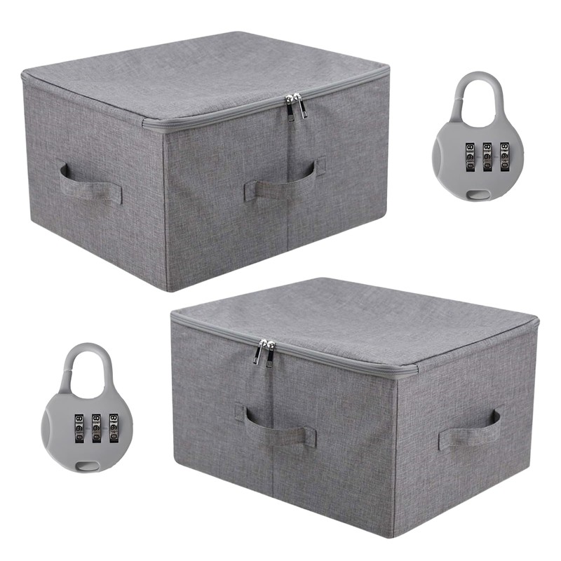 2 x Lockable Storage Box with Combination Lock, Foldable Fabric Box with Lid for Clothes, Toys, Robust Organiser Box, Dust and Waterproof, Ideal for Home and Moving (30 x 20 x 18 cm)