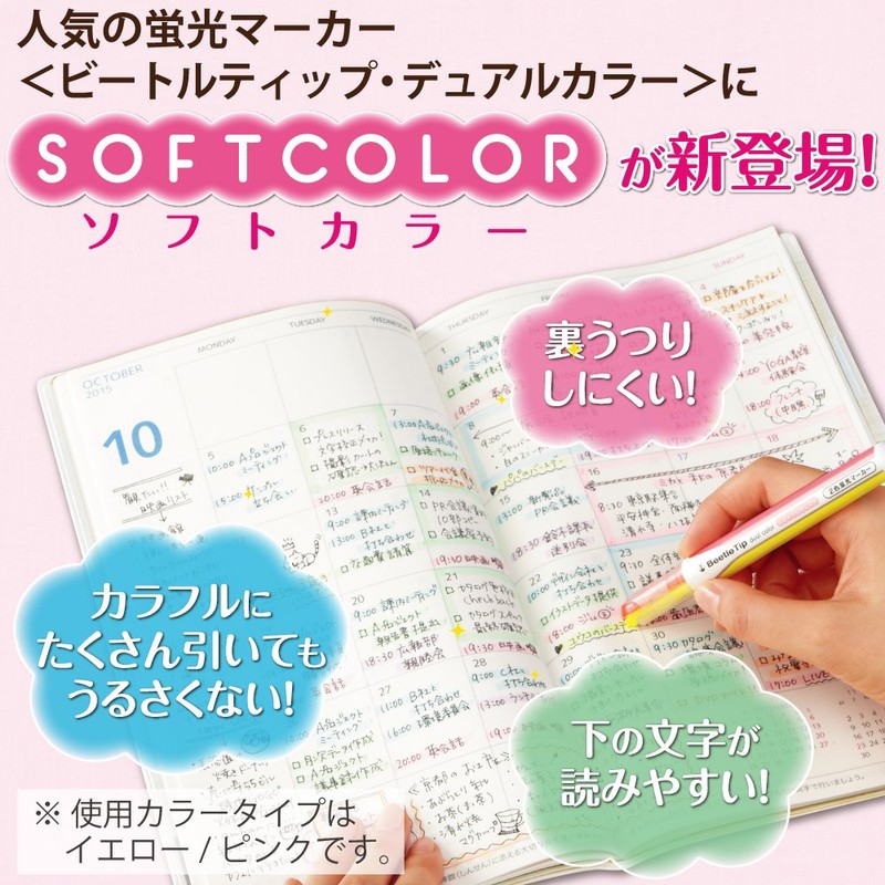 コクヨ 2色蛍光マーカー ビートルティップ・デュアルカラー ソフトカラー イエロー×ピンク PM-L313-1-1P