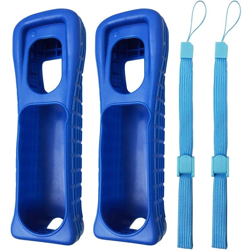 2 x Silicone Skin Case Cover with Wrist Strap for Wii Remote Controller (Blue)