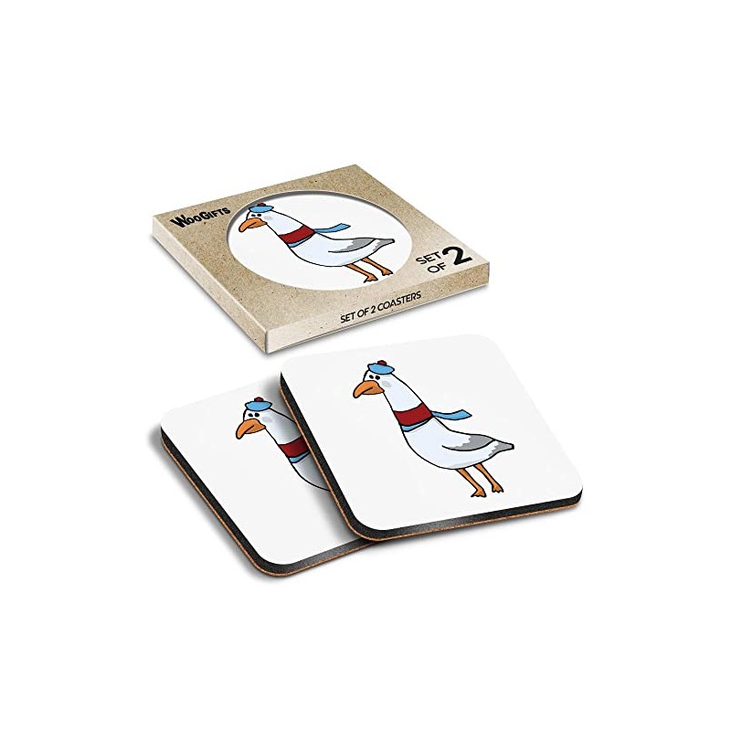 2 x Square Coasters - Funny Seagul Bird Seaside Nautical Sailing Cork Backed MDF Glossy Tea Coffee Accessory #170575