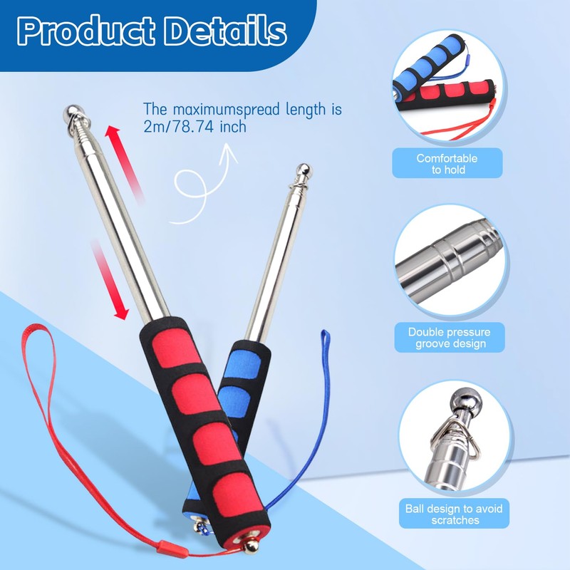 2 x Telescopic Batons, Flagpole, 2 m, Stable Baton, Telescopic Flag Pole, Telescopic Baton, Flagpole, Telescopic Pole 2 m for Travel, Outdoor Activities, Lessons, Training