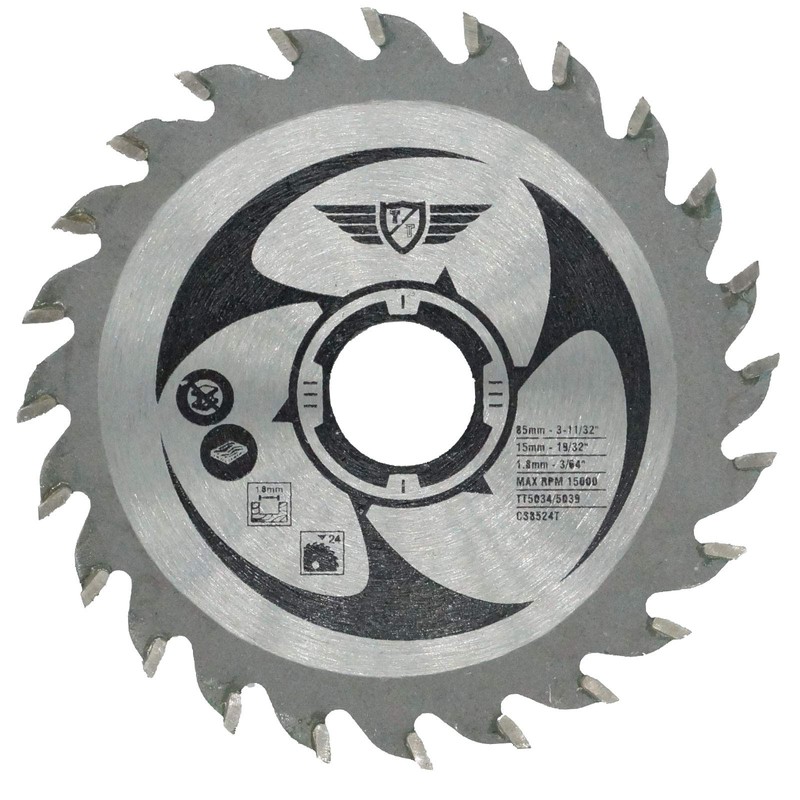 - 85 mm 24 teeth per inch premium saw blades specially designed for 85 mm mini saws with a 15 mm hole size. Thin kerf, perfectly tensioned steel plates for best application and long life