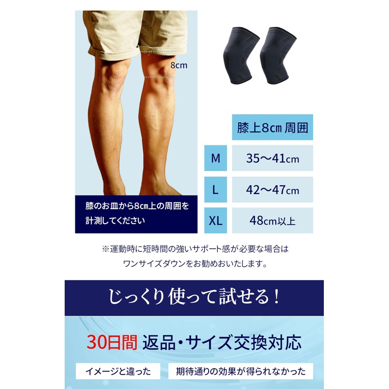 - 現役整体師の監修の元、スポーツ選手に聞き取りを実施し、様々な状況を想定して商品開発をいたしました。現状で膝に不安を感じるかたも予防のためにぜひ一度お試しいただき、運動や日常生活をお楽しみいただければと思います。