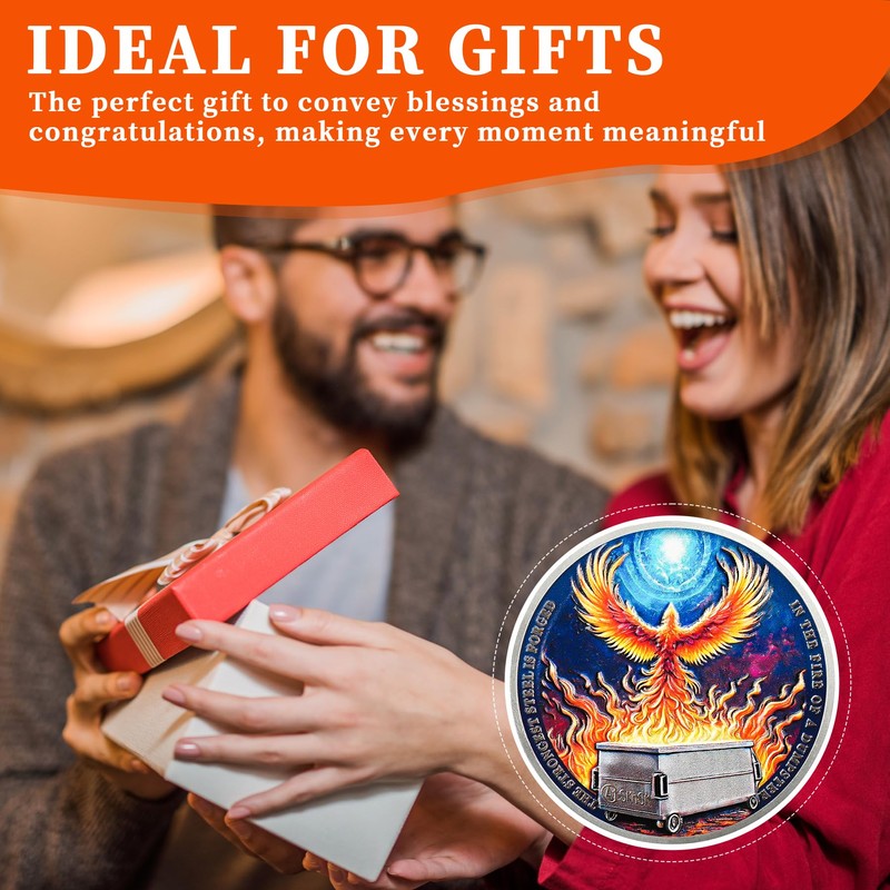 - MOTIVATIONAL MESSAGE: The sobriety coin features a phoenix rising from fire and flames, symbolizing the cycle of life, eternal rebirth, and the inner strength needed for transformation. The engraving “Reborn from Ashes, Every Sunrise is a New Beginning” reinforces the idea that recovery is an ongoing process, where every day is a new opportunity for a fresh start. It encourages a positive mindset, embracing each day as a chance for renewal