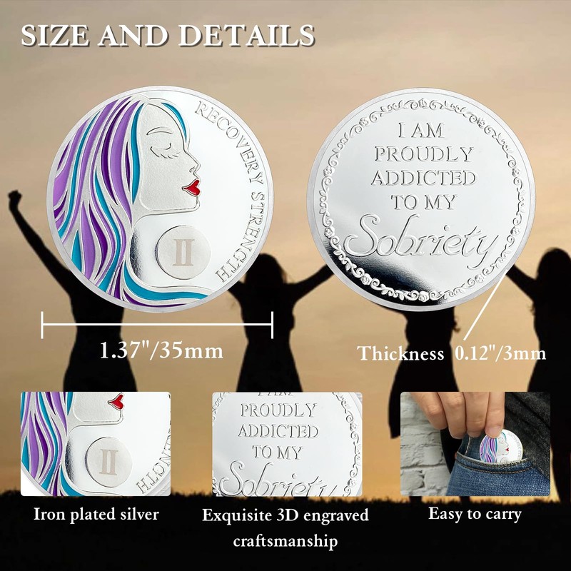 - 【Front Side Features】Front side of sobriety coin is engraved with a confident woman going through a sober recovery journey with the inscription "RECOVERY STRENGTH", the special laser number signifying the length of sobriety