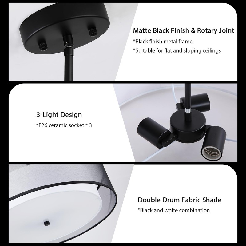 - 3-Light Design: This stunning black drum chandelier features 3 E26 sockets, compatible with various bulb types up to 60W. It's also compatible with dimmable bulbs and dimmers (not included). Ideal for those who love flexibility in lighting