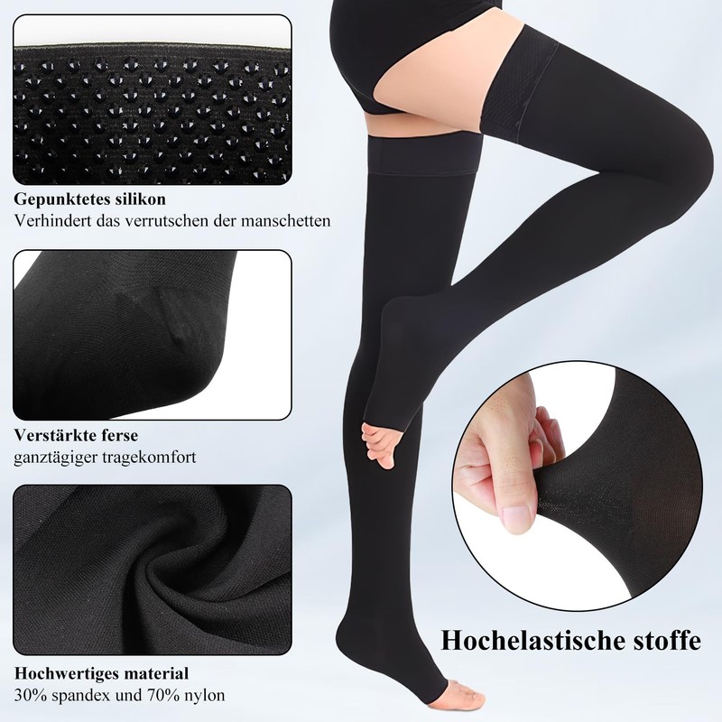 - Oberschenkel Lang Stützstrümpfe Mehrere Größen verfügbar: Unsere Offene Zehe Lang Stützstrümpfe haben verschiedene Auswahlmöglichkeiten, von S bis XXL, in 5 verschiedenen Größen, Sie können Ihre Größe nach dem Größenführer wählen. Wenn Sie eine bequemere Passform bevorzugen, sollten Sie eine größere Größe wählen, wenn Ihre Umstände zwischen 2 Größen liegen. Treffen Sie irgendwelche Probleme, kontaktieren Sie uns bitte, wir werden Ihnen definitiv helfen, Probleme zu lösen.