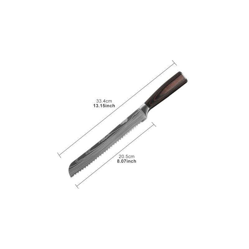 【Hochwertiger rostfreier Stahl】Die Klinge des Brotmessers besteht aus rostfreiem Stahl 7CR17MOV, der eine hohe Rostbeständigkeit und Verschleißfestigkeit aufweist und nach der Wärmebehandlung (Vergüten) eine höhere Härte besitzt. Stärker und haltbarer als andere Produkte.