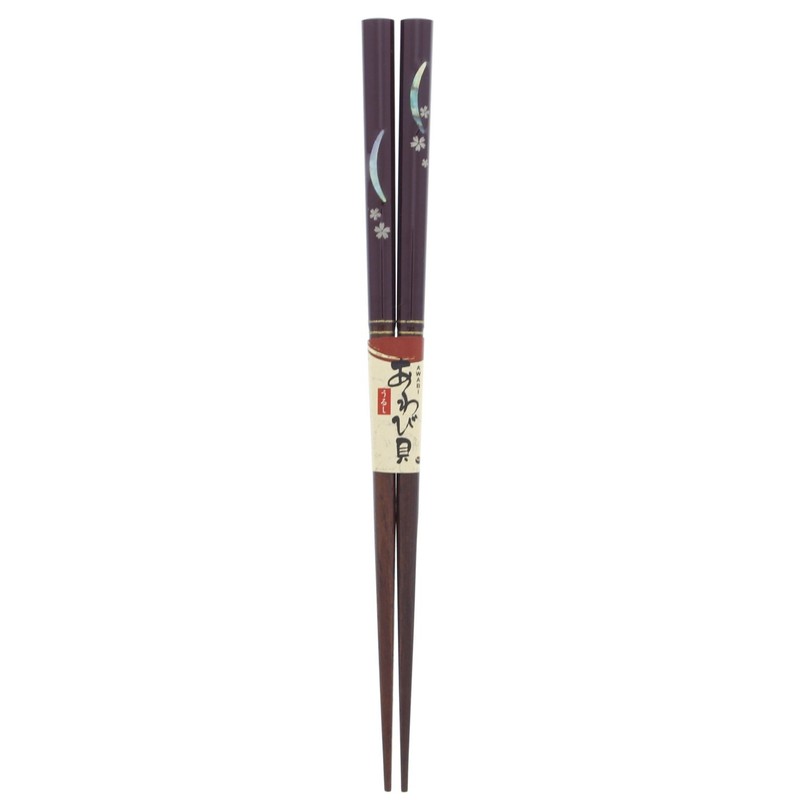 箸 貝細工 アワビ 三ヶ月 桜 木製 (天然木) 漆 塗装 20.5cm