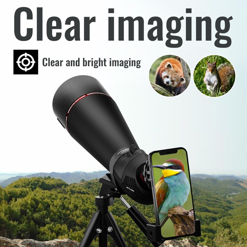 - Tripod and Phone Adapter for Clear Recording: This 20-60x80 spotting scope for target shooting comes with a portable tripod and a smartphone adapter, allowing you to stabilize your observations and capture photos/videos of everything you see. Share your remarkable observations with family and friends.