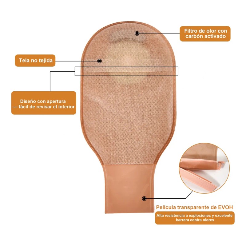 Caja de 20 bolsas de ostomía con clip diseñadas para pacientes con ileostomías o colostomías, especialmente para quienes requieren este tipo de atención. Diseñadas pensando en la comodidad del usuario, estas bolsas incluyen un filtro de carbón activado que ayuda a reducir los olores, brindándole tranquilidad durante el uso diario. Su sistema de cierre garantiza una protección eficaz, mientras que su diseño hipoalergénico reduce el riesgo de irritación de la piel.