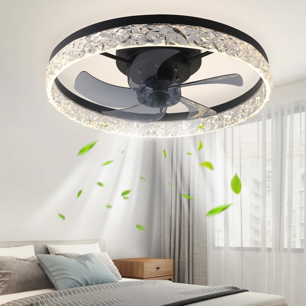 20'' ceiling fan with light,low profile ceiling Fans with Lights and Remote,Stepless Color Temperature Change 6 Wind Speeds fandelier ceiling fan with light for bedroom,living room and kids room