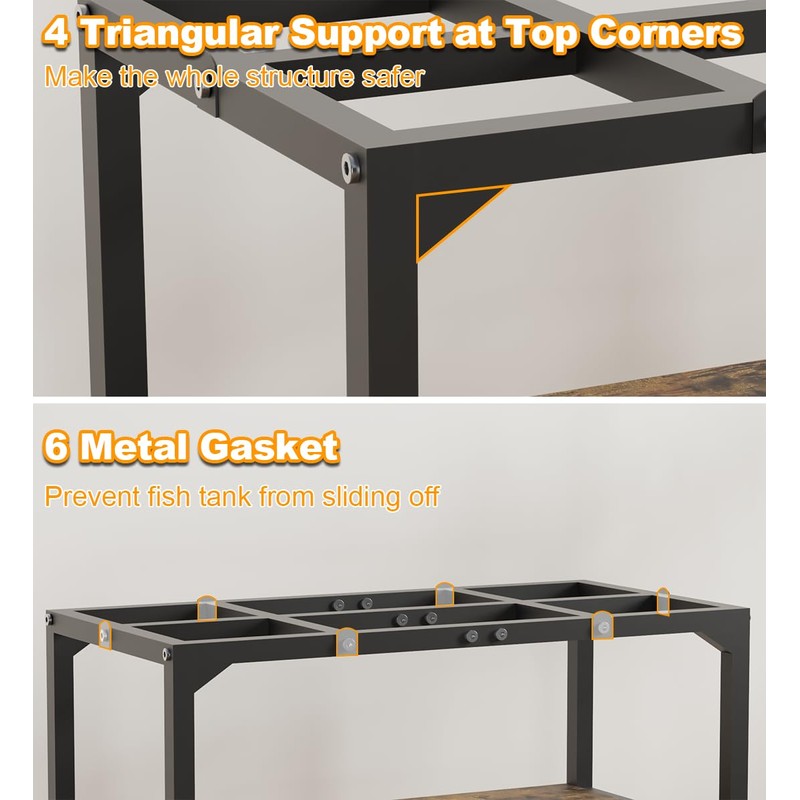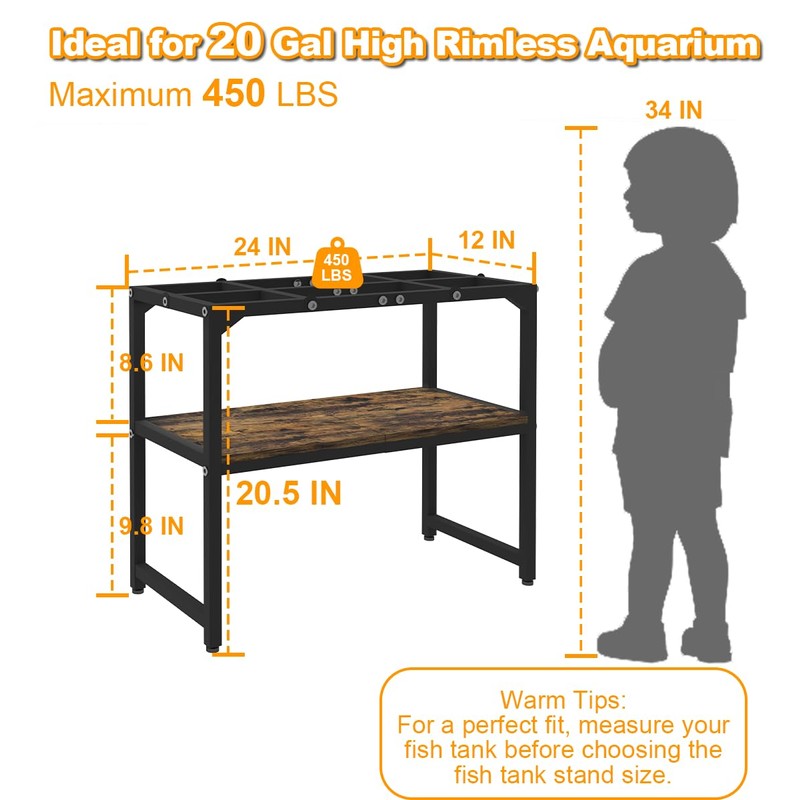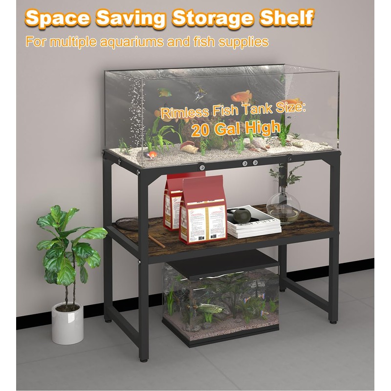 Mondazie 20 Gallon High Rimless Fish Tank Stand with Shelf for Storage, 2 Tiers Metal Aquarium Stand, Breeder Tank Turtle Reptile Terrariums Stand Rack for Home Office, 24" L x 12" W x 20.5" H, Black