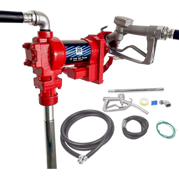 - đăHigh CapacityăThis industry standard DC pump dispenses up to 20 GPM, which could make fueling be more efficient. Designed for 12V battery powered bung mounted transferring from fuel tanks on trailers or trucks, It can pull fuel at depths of 9.8 ft. and discharge fuel up to heights of 26 ft. Larger flow rate, faster transfer, and higher efficiency meet your higher use needs.