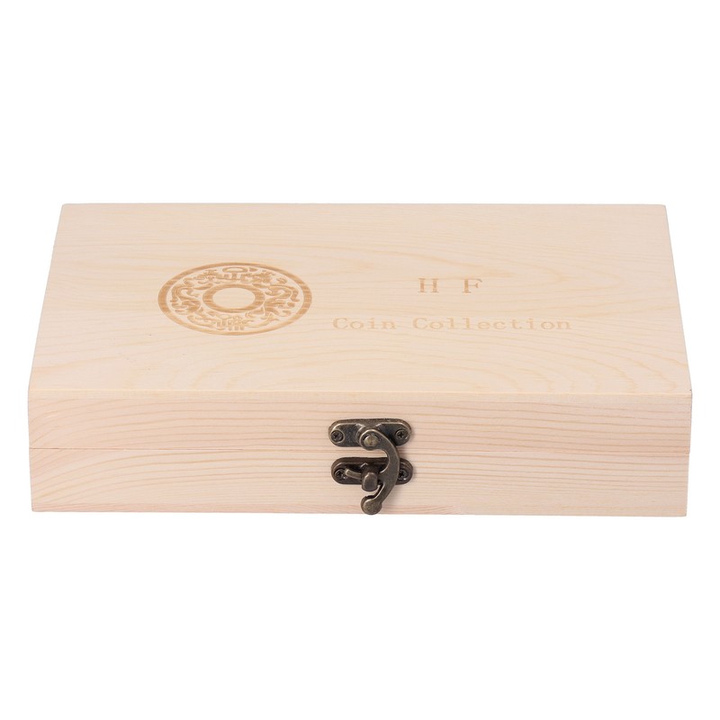 1、The workmanship is fine, the surface of the storage box is engraved with letters and patterns, and the exquisite craftsmanship makes it look very delicate. 2、Durable, the coin storage box is made of high quality wood, with a smooth surface, strong durability and long service life, so you can use it for a long time. 3、The lock of the storage box adopts a retro design, which makes the storage box full of retro flavor, which corresponds to the meaning of collecting commemorative coins. 4、The box contains a mating mat, which is widely used in the production of various sizes of commemorative coins in various ranges. 5、You can put the commemorative coin on the adjustment mat, put it in the small protective box, and then put it in the storage box to better protect the commemorative coin.
