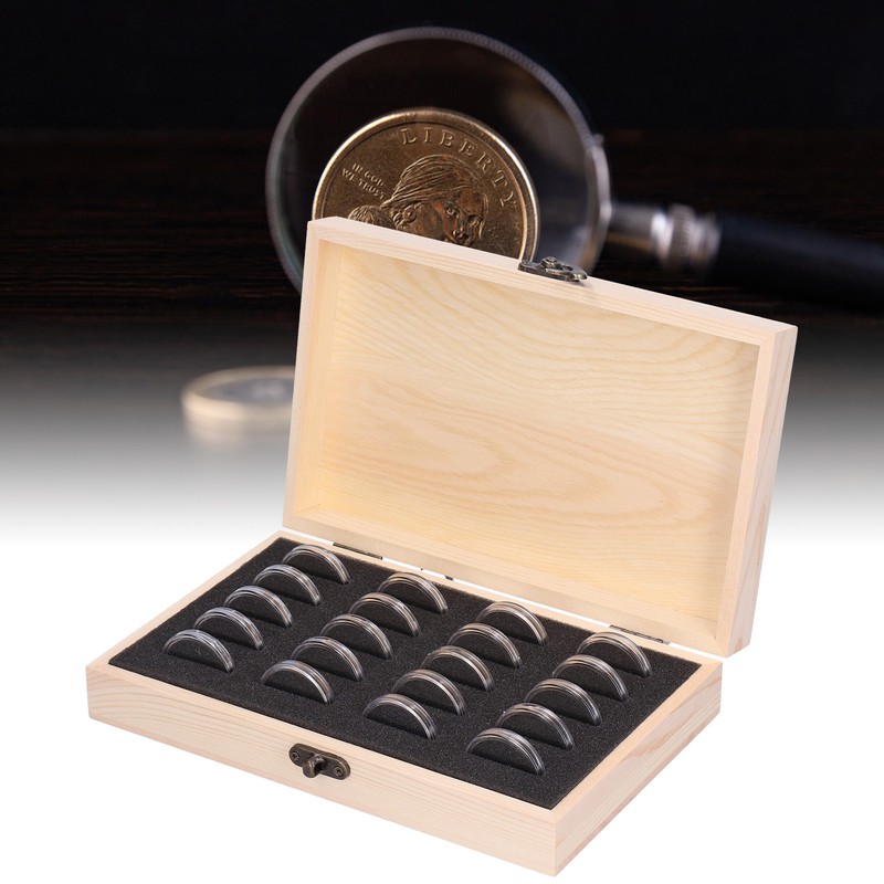 20 Grid Coin Collection Box Wooden Coin Protection Storage Box for Home Office Living Room