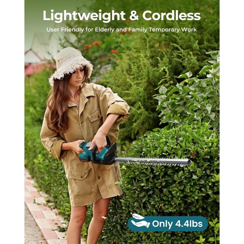 20'' Hedge Trimmer Cordless with Battery, Electric Handheld Bush Clipper with 2 Pack Rechargeable Batteries, 3000RPM 180° Rotatable Head, 2/3'' Blade Gap