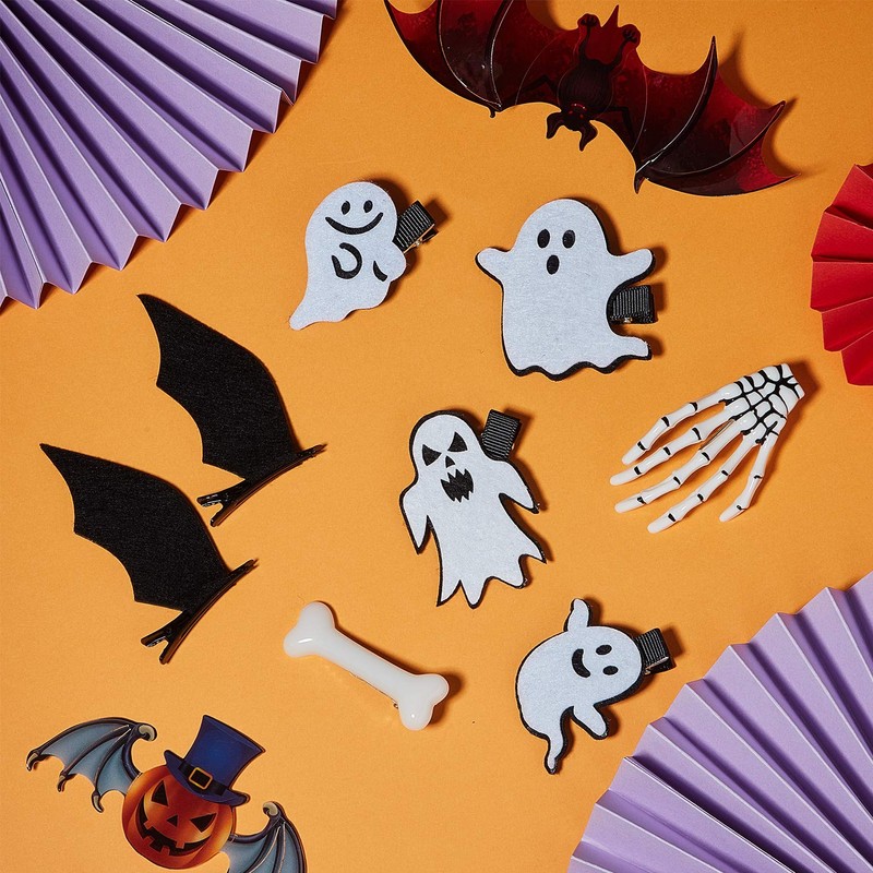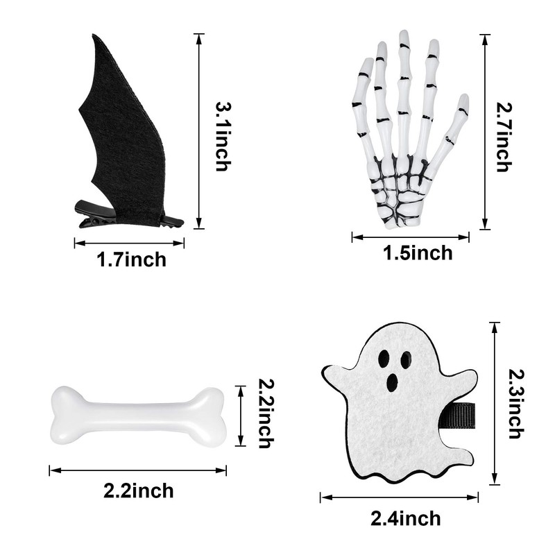 - Atractivo diseño: alas de murciélago, hueso y fantasma son los elementos típicos de Halloween, estas pinzas de pelo bonitas y bien hechas con las imágenes de Halloween están llenas de sensación festiva y adorable, llevarlas pueden hacerte atractiva y destacar entre la multitud.