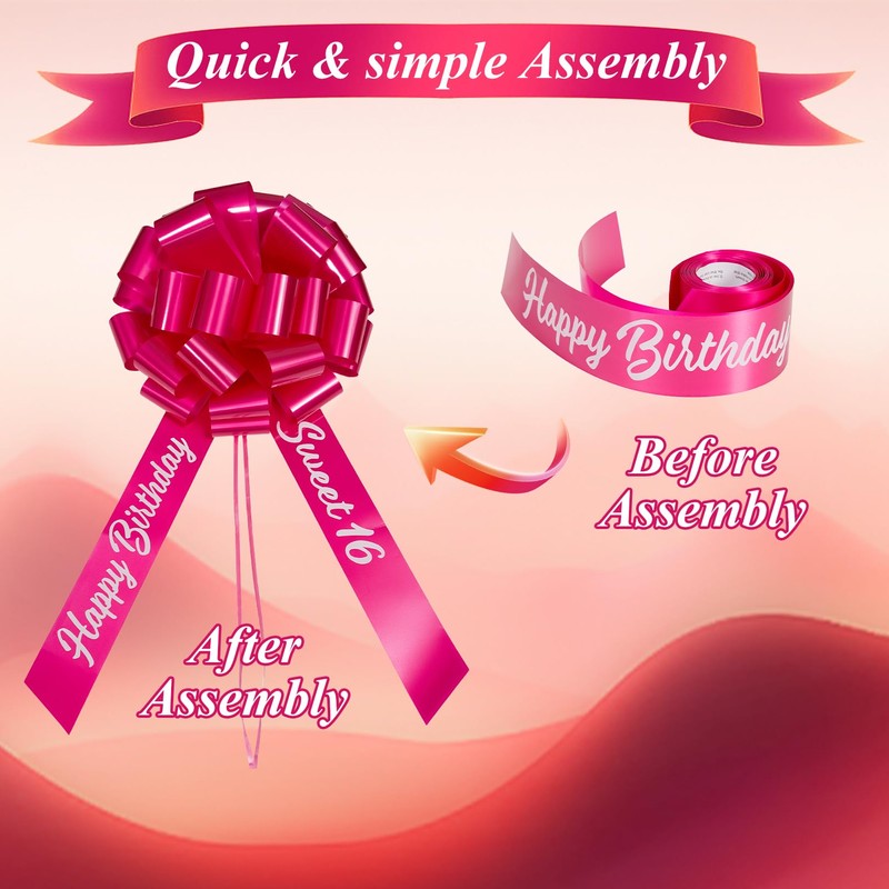 - Versatile Use: Ideal for various occasions, this ribbon bow can be used as a 16th birthday gift decoration for cars, motorcycles, boats, or even large furniture, adding a sweet and festive touch to any setting.