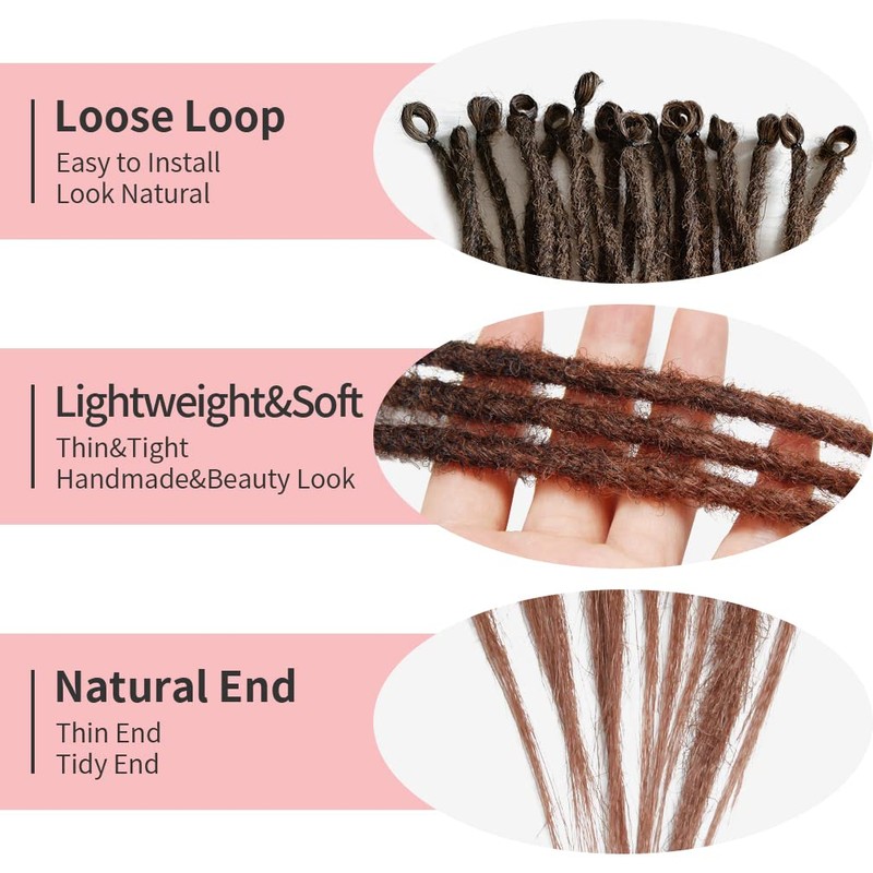 - Features: These dreadlocks extensions are only 0.6 cm thick. The newly upgraded materials and handcrafts different from the past. They are really light and natural if you install them.