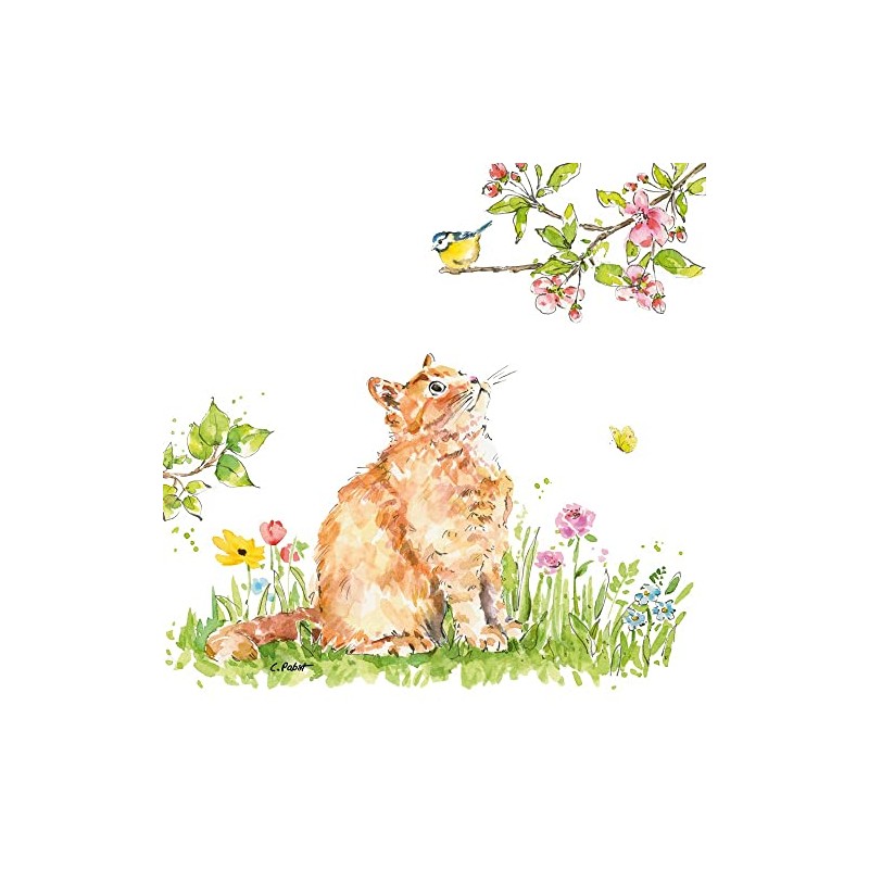 20 napkins, cat watching, blue tit, table decoration, decoupage, napkin technology, 33 x 33 cm