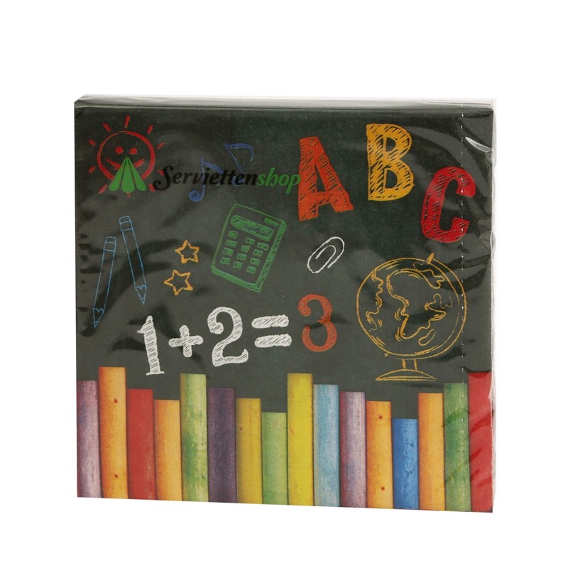20 napkins, colourful school board with ABCs for school enrolment, first school day, school, for both girls and boys, 33 x 33 cm