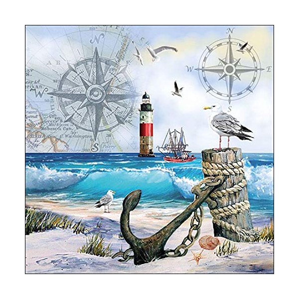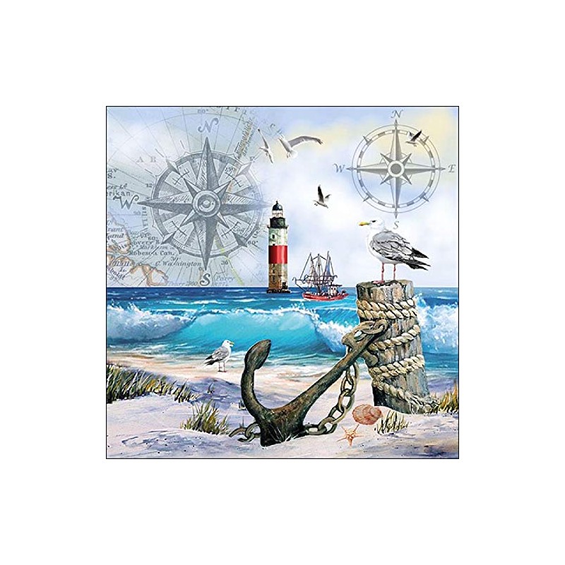 20 napkins moments by the sea, anchor, seagull, beach, maritime 33 x 33 cm.