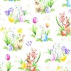 - Design: bunnies on spring flowers as a table decoration for Easter