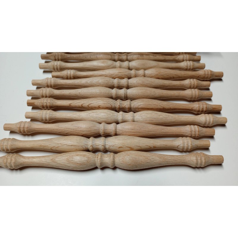 Smooth hardwood spindle is made of Oak.