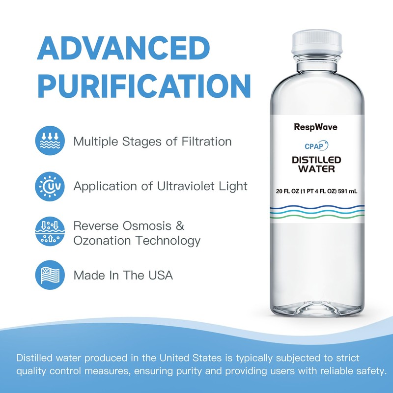 20 oz 12-Pack Distilled Water for CPAP Machines | Made in USA | Use with ResMed and Respironics Machines | Travel-Friendly, Clean, Multi-Use