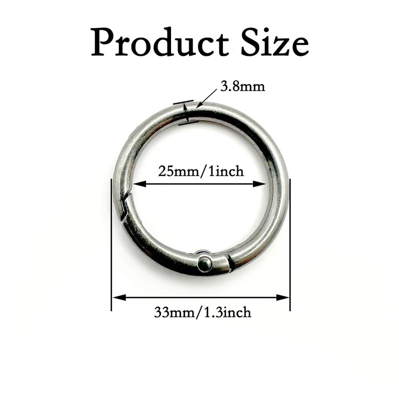 20 Pack 1 Inch Carabiner Clip, Spring O Rings Metal Alloy Purse Clip, Round Keyring Buckle Clips, Small Keychain Hook Clip for Key Bag (Black)