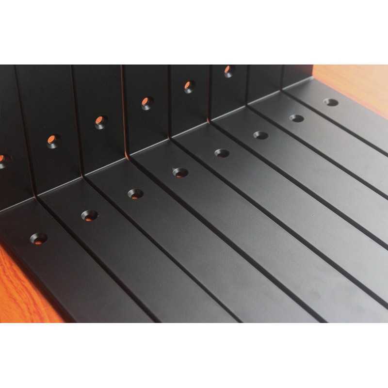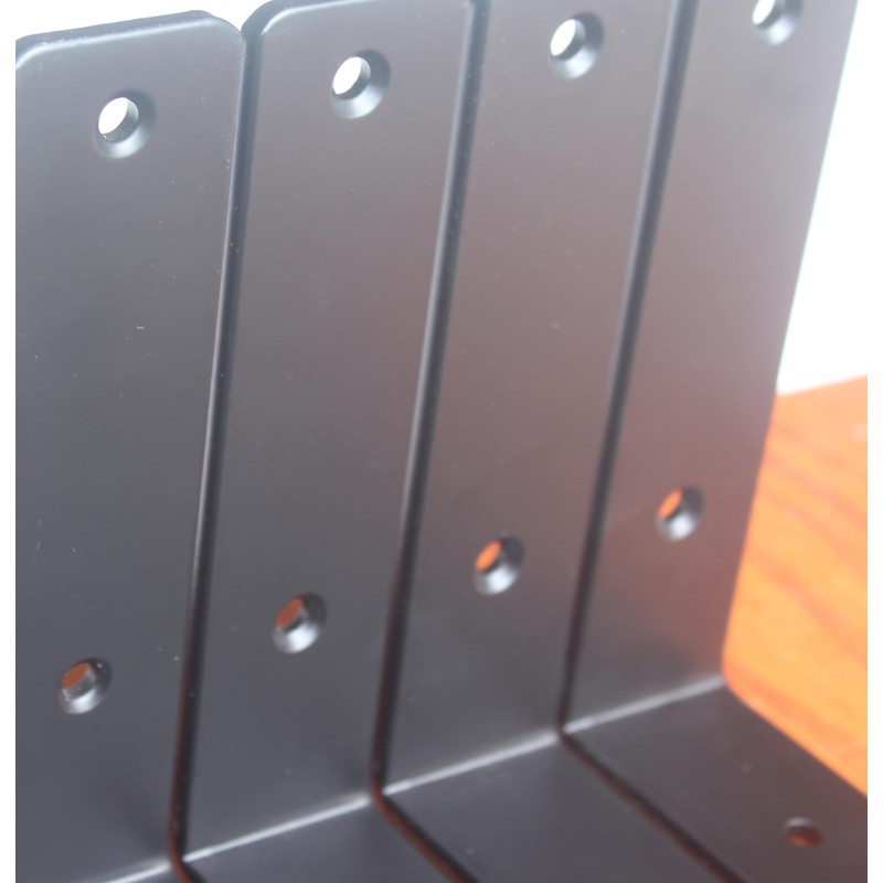 - Heavy duty - 5mm thick, this steel shelf bracket is durable and made to last a lifetime.The screw holes are beveled down to 1/4” wide; we also include black screws.Our shelf brackets can be used as exhibition stand,bicycle stand,garden shelf, kitchen shelf,office shelf,etc