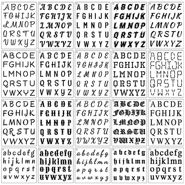 - 20 PCS LETTER STENCILS SET: You will receive 20 pieces letter stencils for painting, including 15 pieces uppercase A-Z letters 5 pieces lowercase a-z letters. These 1" letter stencils are designed with different styles of letters, which can help you create your own unique diary and plan or any other art projects.