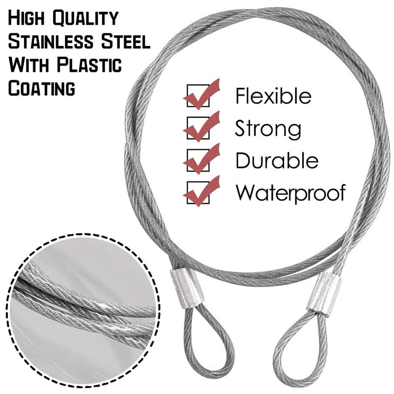 - More Occasions:Shrink tubing protect you from scratching by metal hoop, plastic vinyl coating is duable and no fade.Suitable for Camera, any other camera systems or electronic devices you need to secure.Use and Lock your padlocks. Loop around luggage, bags, carabiner, suitcases, tool boxes and so on.