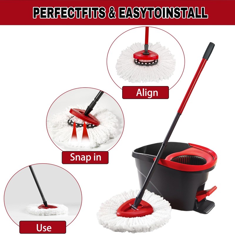 - 100% Microfiber: Our spin mop heads are made of 100% microfiber strands with strong water absorption, ideal for both wet and dry use. the microfiber mop head easily removes and absorbs stubborn dirt and grime, durable and machine washable