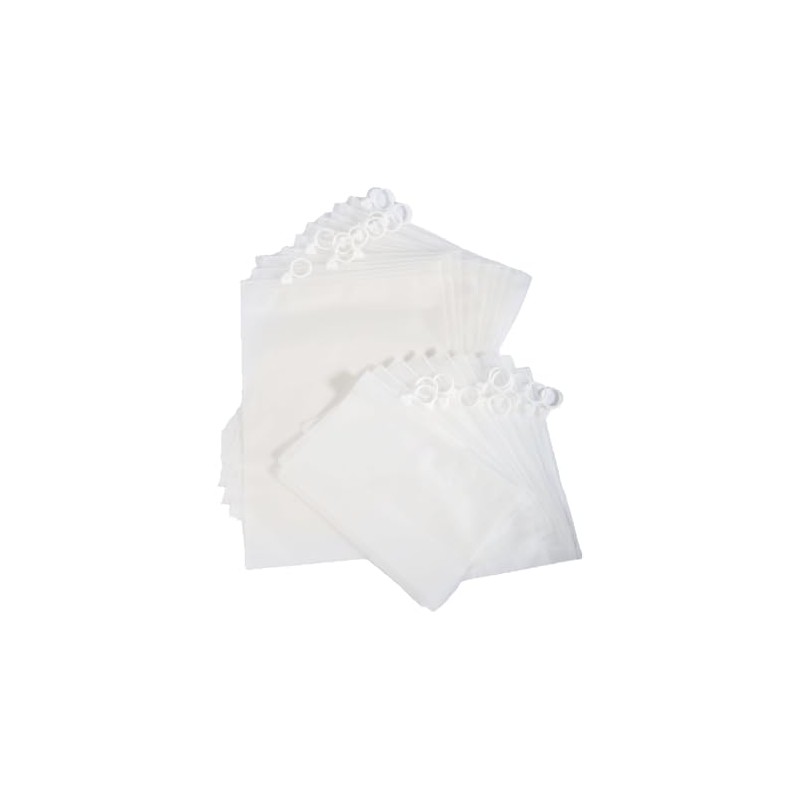 Stay organized and protect your essentials with this 20-pack of clear storage bags. Featuring a durable, waterproof plastic construction and secure zipper closures, these reusable pouches are perfect for safeguarding cash, checks, pencils, cables, and more. The set includes 10 small bags measuring 5.9" x 7.8" and 10 medium bags measuring 8.6" x 11.8", making it easy to find the right size for your needs. Whether you're packing for a trip, decluttering your desk, or simply keeping your belongings safe and dry, these versatile storage bags are a must-have.