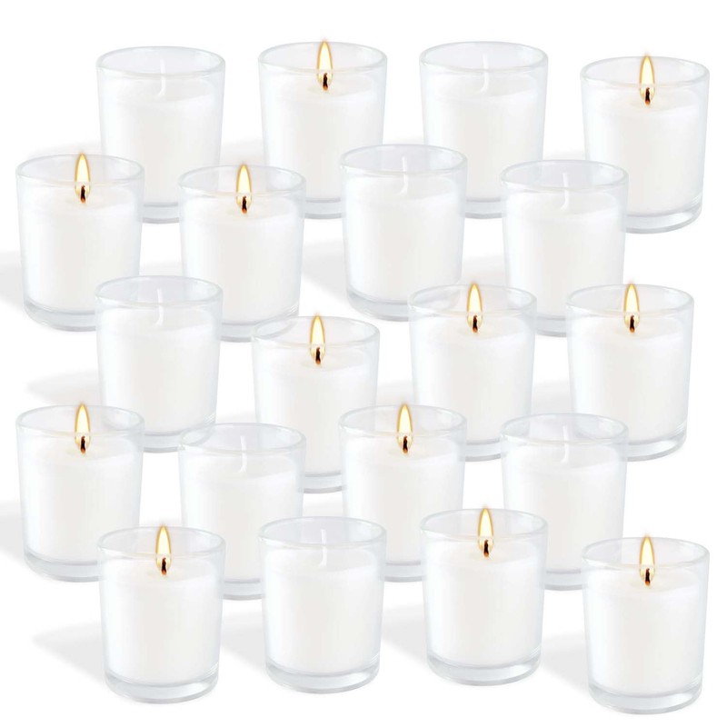 20 Pack White Unscented Glass Cup Candles - 15-20 Hour Burn Time, Soy Wax, Minimalist Style for Home Decor, Weddings, Parties & Special Occasions.