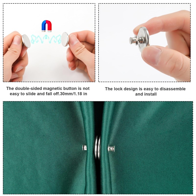 - Product Size: The curtain magnets closure measured about 0.98 inch/25mm, large contact surface and strong suction. Useful pin buckle design makes it fixed on the curtain and not easy to fall off.