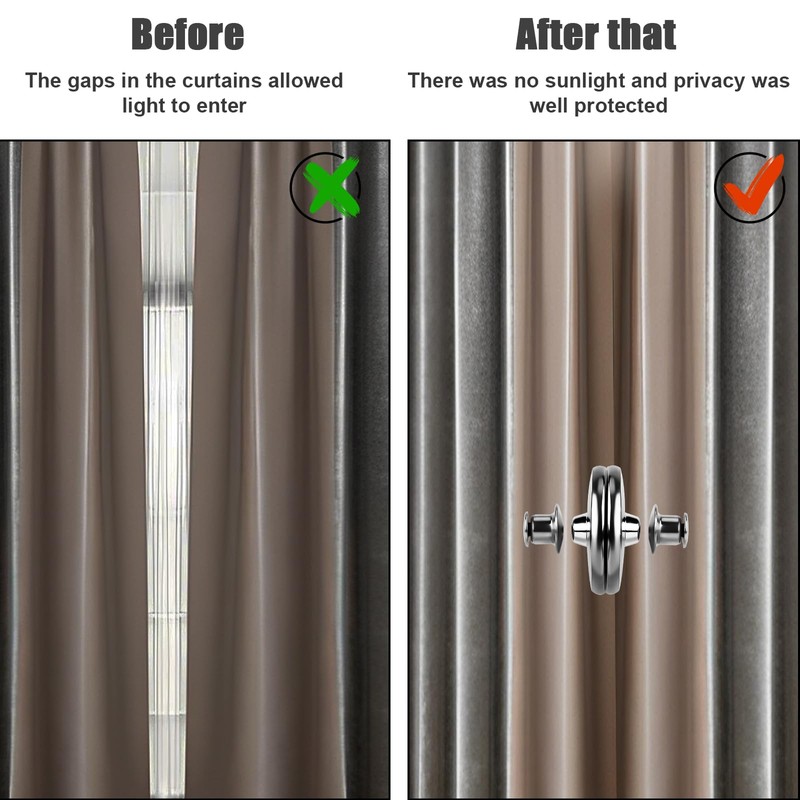 - Privacy Protection: The magnetic curtain clips are made of premium double sided magnet, powerful suction holds the curtains firmly in place, preventing light leakage and curtain blowing, providing better privacy protection. Create a better sleeping environment at the same time.