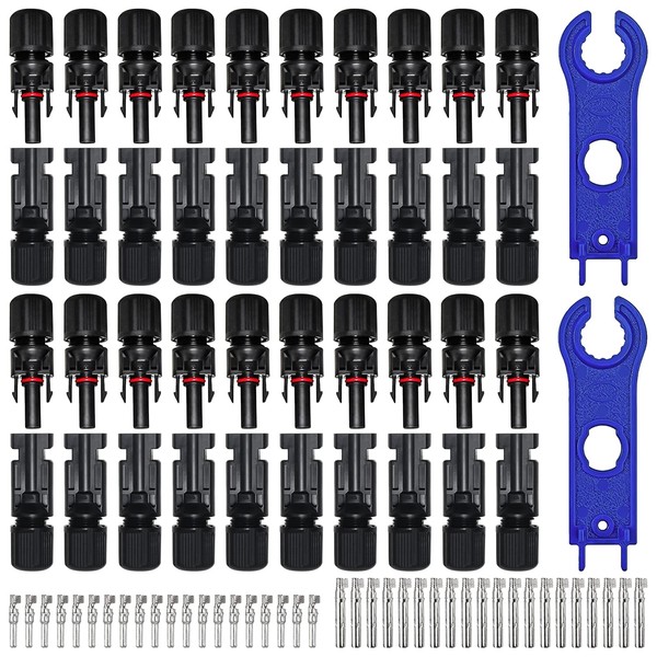 Plug set: you will receive 20 pairs of black solar panel cable plugs (20 x male and 20 x female) + 40 silver pins (20 x male and 20 x female) + 2 wrenches. This set of solar panel plugs can make your life easier, photovoltaic connectors meet your requirements and be reliable.