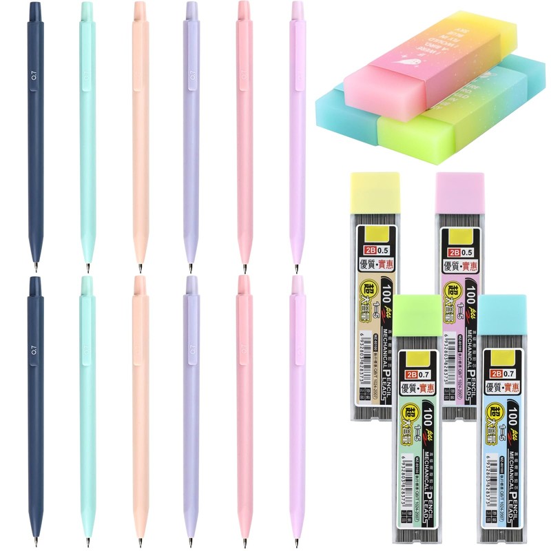 - 【Premium Quality】Cute Pencil Set is made of high quality plastic material, which is strong and not easily damaged. The lead inside the Pastel Mechanical Pencil Set is smooth and smooth, and the writing is smooth. The eraser is soft and moderate, wiping clean and leaving no trace.