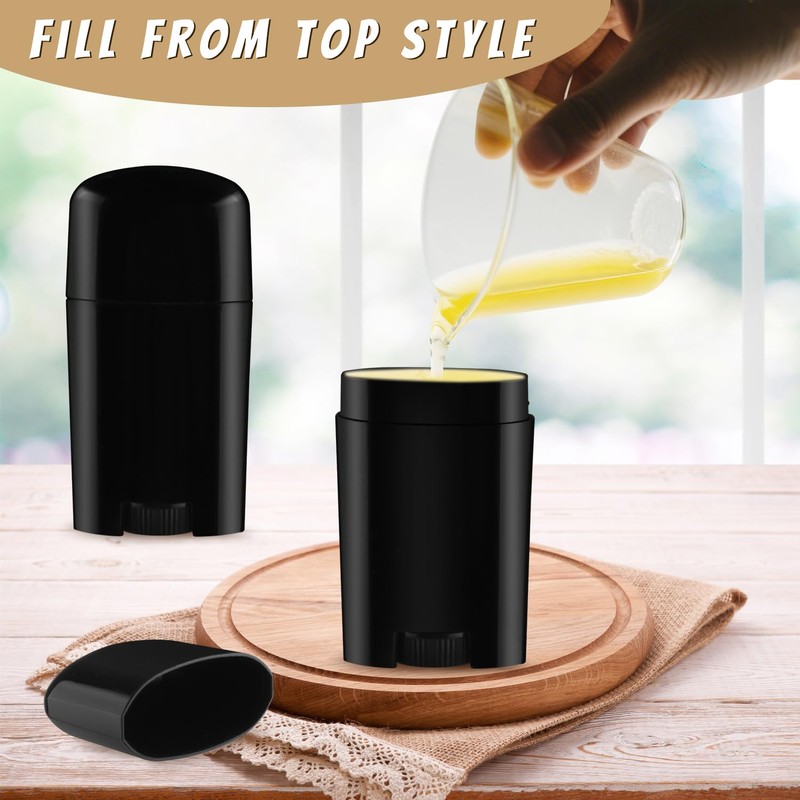 20 Pcs 50g/1.7oz Plastic Deodorant Containers Empty Top Filling Stick Tube Oval Deodorant Bottles for DIY Lotion Bar Sunscreen Lip Balm Cosmetic - Black