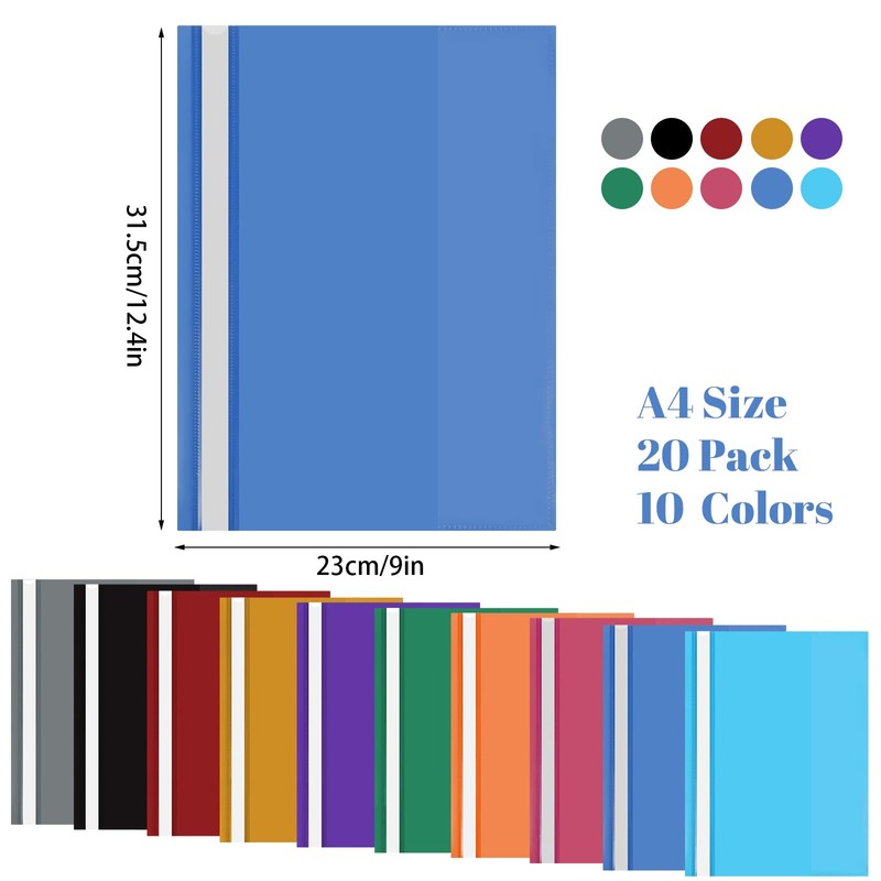 • Large capacity: The size of the A4 presentation folders is 31.5*23cm/12.4*9in. Each A4 plastic folder has two holes for clamping. Each clip can hold up to 100 A4 sheets of paper, which is convenient for us to store various office documents, learning materials, etc., which can make your desktop more tidy.