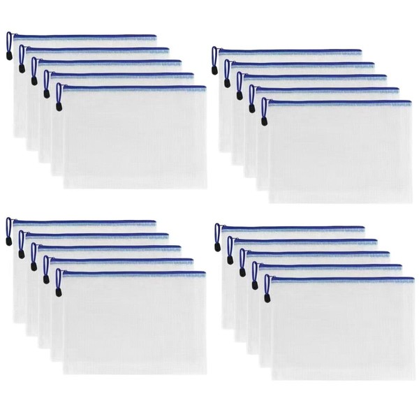 20 Pcs A6 Zipper File Bags,Waterproof Mesh Plastic Pen Pencil File Bags,for School, Office, Business,Papers, Receipts,invoices