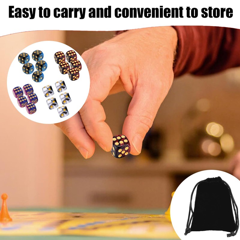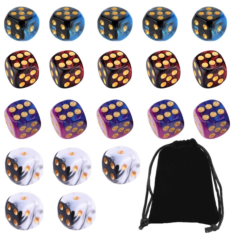 【Package Content】dice & accessories, You Will Receive 20 6-Sided coloured dice and a black storage bag, Sufficient In Quantity To Provide Ample Supply For Your Various Gaming Or Entertainment Needs, To Meet Your Various Gaming Or Other Entertainment Activities.