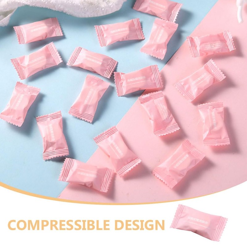20 Pcs Compressed Towel Disposable Face Towel for Travel, Pink Nonwoven Facial Towels, Portable and Space-Saving, High Absorbency, Ideal for Trips and Outdoor Activities