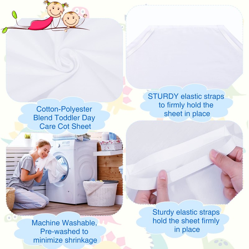 - Ease of Use: standard daycare cot sheets have elastic straps on all four corners for easy installation; Machine washable, tumble dry on low for quick drying