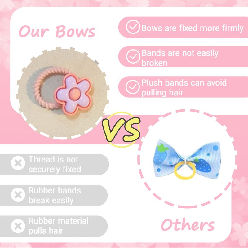 - Selected Materials: This dog bows with rubber bands is made of rubber bands and soft glue, which is lightweight and will not add extra burden to your pet. Puppy hair bows for small dogs girl can be firmly fixed on the dog's hair without falling off, providing you with reliable performance.